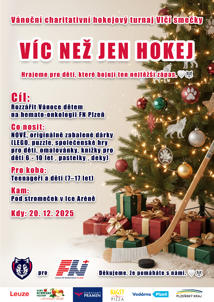 Vánoce jsou časem radosti, rodiny a dárků. Pro některé děti jsou ale bohužel zároveň obdobím těžkého boje, který by žádné dítě nemělo zažívat. Proto se HC Pilsen Wolves i letos zapojují do vánoční charitativní akce „Více než jen hokej“, jejímž cílem je rozzářit Vánoce dětem na hemato-onkologickém oddělení Fakultní nemocnice Plzeň.